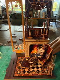 It's a 3D wooden diorama that fits between your books and transforms your bookshelf into a true miniature work of art.