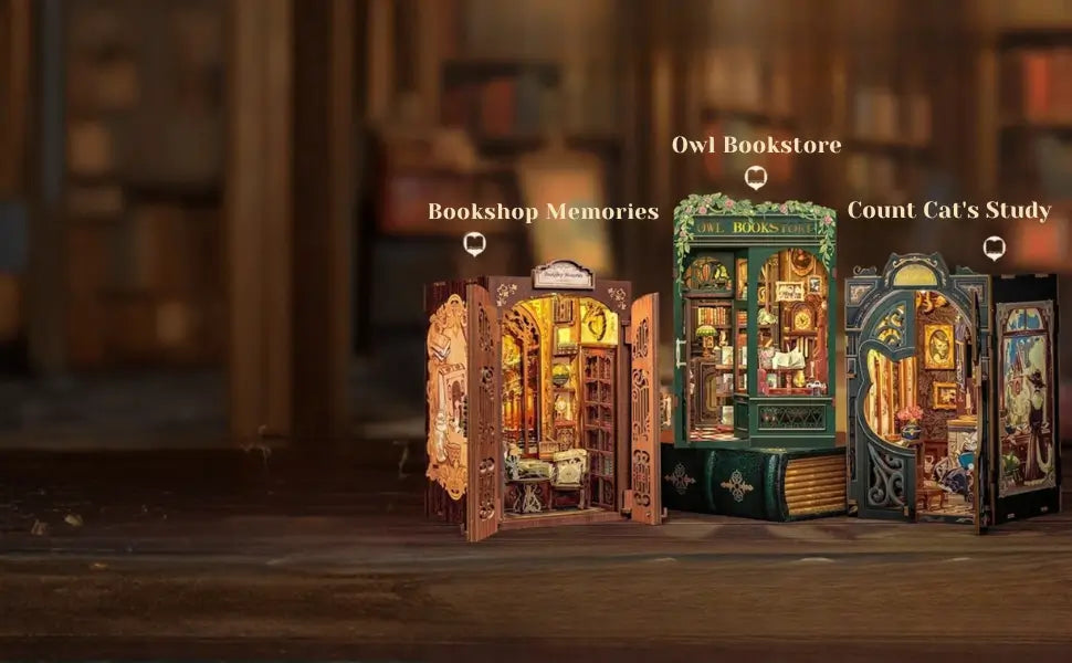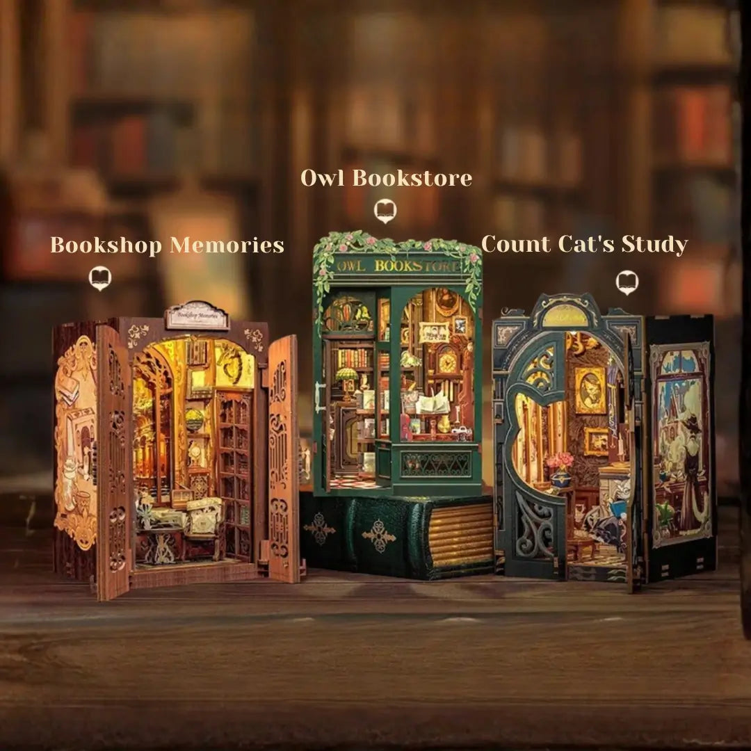 We are a specialized shop dedicated to Book Nooks and miniature house kits. We offering you exceptional 3D dioramas that transform your bookshelf into a true miniature art gallery.