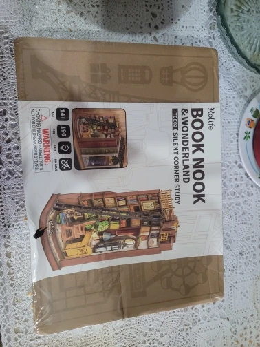 Your DIY Book nook Kit includes everything you need to get started: a detailed instruction guide, cutting tools, crafting papers, solid plywood sheets, and LED lights. Due to shipping restrictions, we can't include glue and batteries with your order.