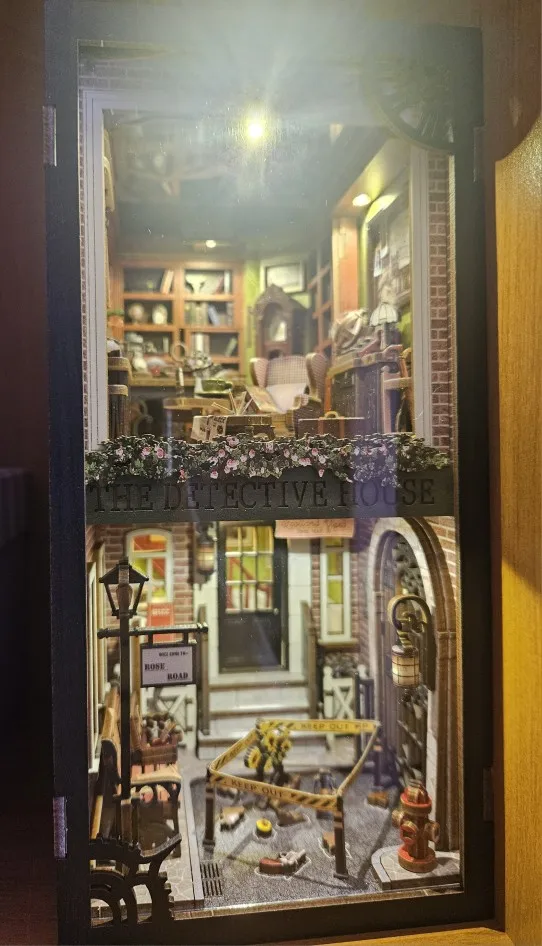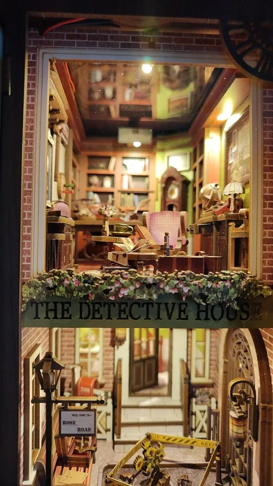 This "The Detective House" Book Nook recreates a 2-story London detective agency inspired by the Sherlock Holmes universe. This 322-piece DIY décor is filled with numerous details like a red brick façade with "The Detective House" sign, Victorian windows with green frames, detective's desk with vintage typewriter, shelves filled with case files and investigation books and many others details. It pairs beautifully in a bookcase surrounded by books or on a desk or nightstand, as this Book Nook can also serve as a night light thanks to its integrated LED lights. It's the perfect gift for a creative mind who loves assembling objects.